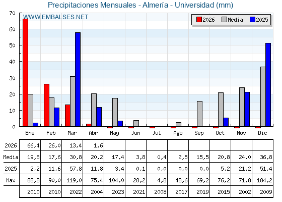 | Pluviómetro | Provincia | 1h | 6h | 12h | 24h |