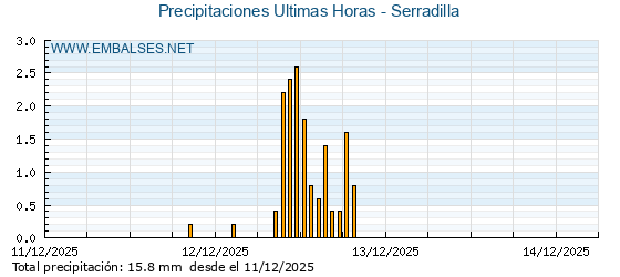 | Pluviómetro | Provincia | 1h | 6h | 12h | 24h |