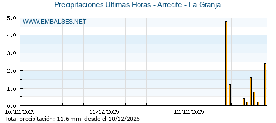 | Pluviómetro | Provincia | 1h | 6h | 12h | 24h |