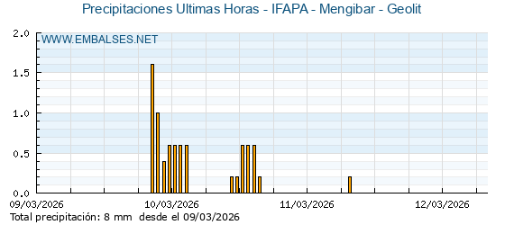 | Pluviómetro | Provincia | 1h | 6h | 12h | 24h |