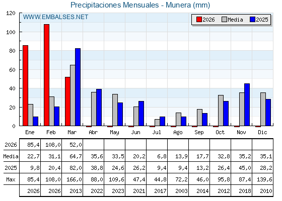 | Pantano | Capacidad | Embalsada | Variación |