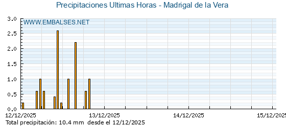 | Pluviómetro | Provincia | 1h | 6h | 12h | 24h |