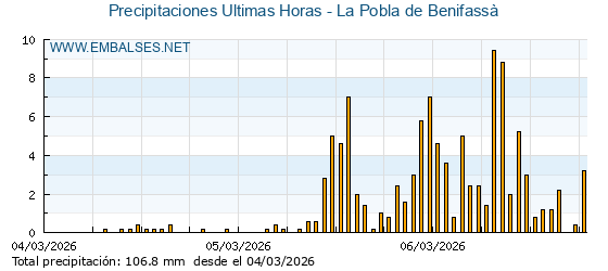 | Pluviómetro | Provincia | 1h | 6h | 12h | 24h |