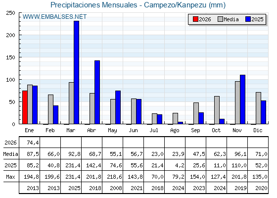 | Pantano | Capacidad | Embalsada | Variación |