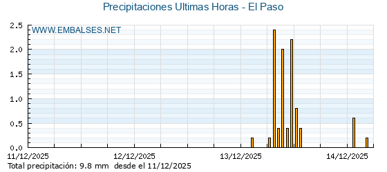 | Pluviómetro | Provincia | 1h | 6h | 12h | 24h |
