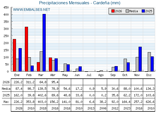 | Pantano | Capacidad | Embalsada | Variación |