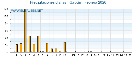 | Pluviómetro | Provincia | 1h | 6h | 12h | 24h |