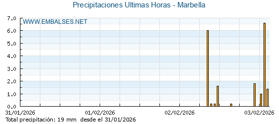 | Pluviómetro | Provincia | 1h | 6h | 12h | 24h |