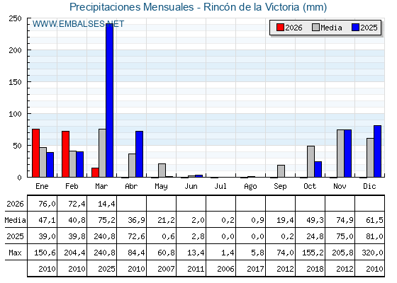 | Pluviómetro | Provincia | 1h | 6h | 12h | 24h |