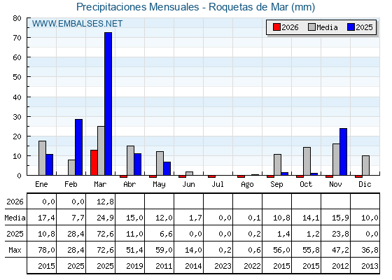 | Pluviómetro | Provincia | 1h | 6h | 12h | 24h |