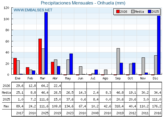 | Pluviómetro | Provincia | 1h | 6h | 12h | 24h |