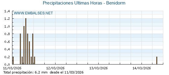 | Pluviómetro | Provincia | 1h | 6h | 12h | 24h |