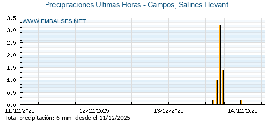 | Pluviómetro | Provincia | 1h | 6h | 12h | 24h |