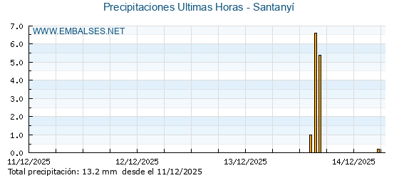 | Pluviómetro | Provincia | 1h | 6h | 12h | 24h |