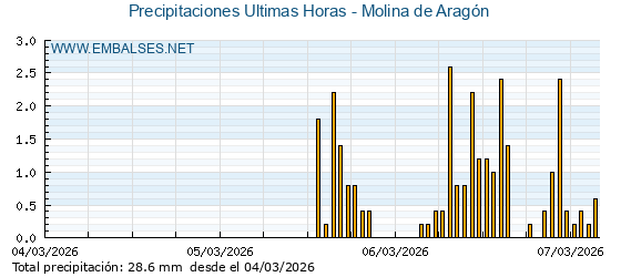 | Pluviómetro | Provincia | 1h | 6h | 12h | 24h |
