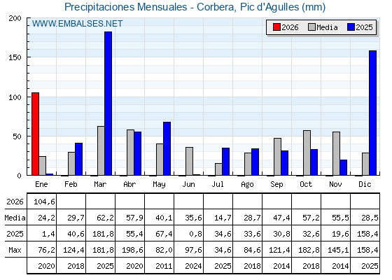 | Pantano | Capacidad | Embalsada | Variación |