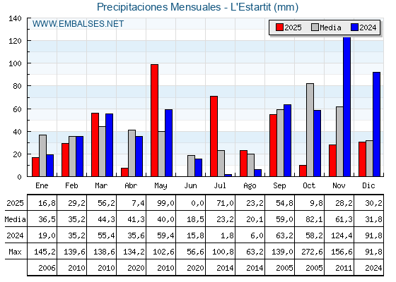 | Pantano | Capacidad | Embalsada | Variación |