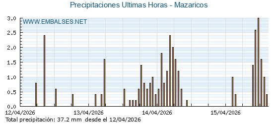 | Pluviómetro | Provincia | 1h | 6h | 12h | 24h |