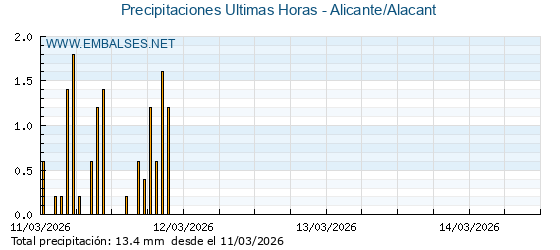 | Pluviómetro | Provincia | 1h | 6h | 12h | 24h |
