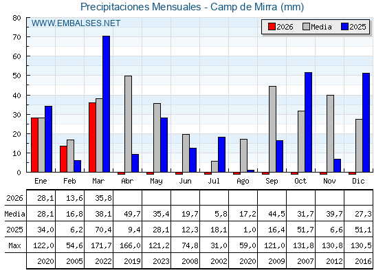 | Pantano | Capacidad | Embalsada | Variación |