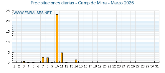 | Pluviómetro | Provincia | 1h | 6h | 12h | 24h |