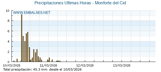| Pluviómetro | Provincia | 1h | 6h | 12h | 24h |