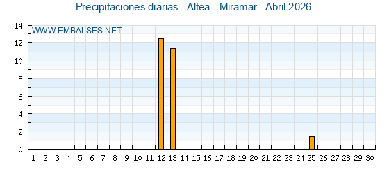 | Pluviómetro | Provincia | 1h | 6h | 12h | 24h |
