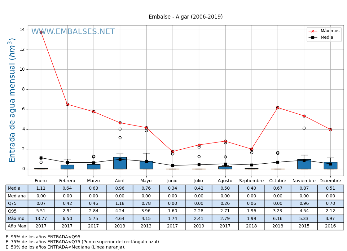 | Pluviómetro | Provincia | 1h | 6h | 12h | 24h |