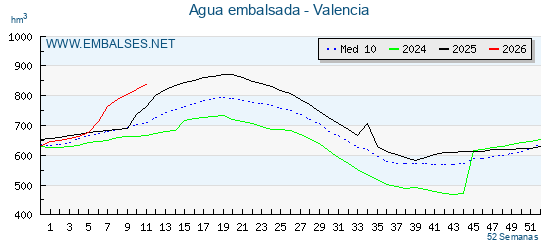 Embalses en Valencia (hm3)